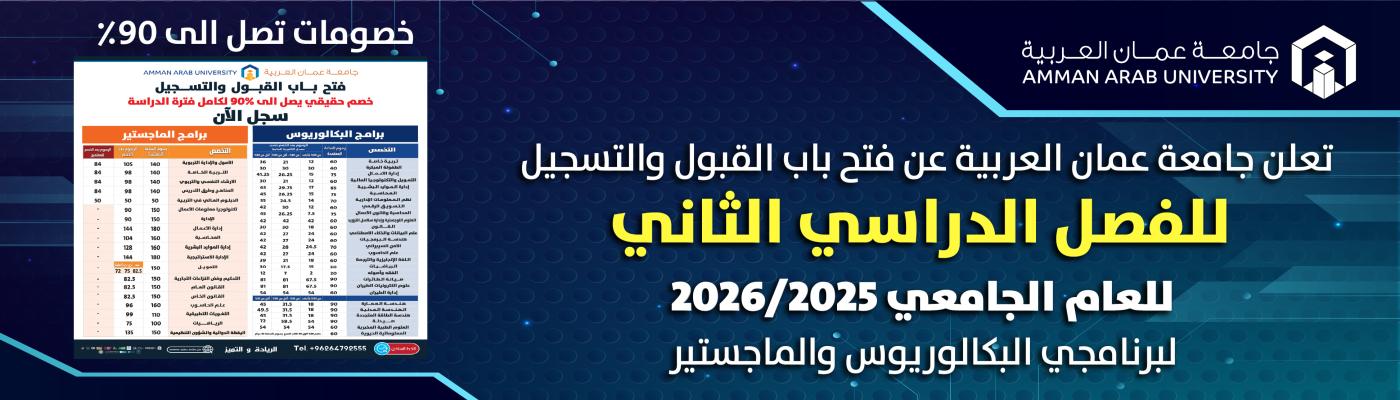 جامعة عمان العربية ضمن افضل 100 جامعة في تصنيف QS2026 متقدمة 17 مرتبة بتحقيقها المركز 93 عربياً