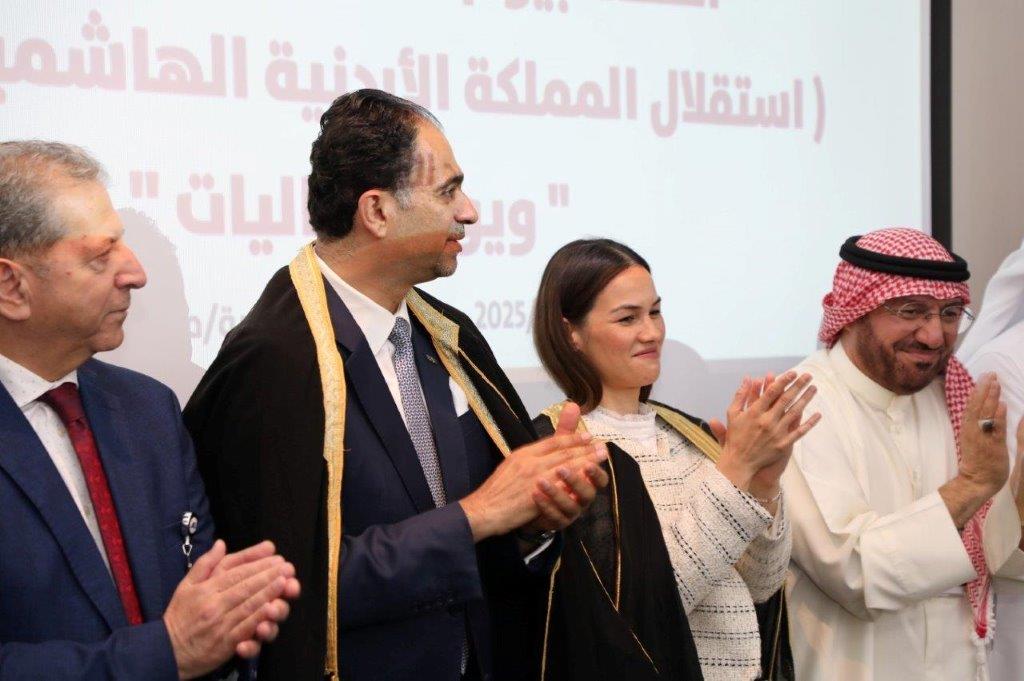 In his opening speech, Dr. Al-Jazy expressed his deep pride in this cherished national occasion and extended greetings and gratitude to HRH Princess Salha bint Asem for her gracious patronage of the celebration. He affirmed that Her Highness's presence adds a national dimension and great honor to this academic institution. He noted that on this glorious day in 1946, the Legislative Council declared the independence of the Hashemite Kingdom of Jordan, and the late founding King Abdullah I bin Al-Hussein—may he rest in peace—was proclaimed King of Jordan, marking the beginning of a journey of glory and dignity carried forward by the Hashemites through generations, up to the reign of the esteemed leader, His Majesty King Abdullah II bin Al-Hussein—may Allah protect him—who continues steadfastly building a modern state based on justice, dignity, and the rule of law.
